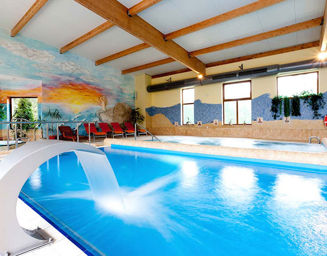 Do dyspozycji gości pozostaje kryty kompleks basenowy wraz z basenem solankowym - masażami kręgosłupa i całego ciała, jacuzzi, ścieżką z hydromasażem stóp oraz innymi atrakcjami wodnymi. Z basenu można bezpośrednio wyjść na taras i zażywać kąpieli słonecznych.